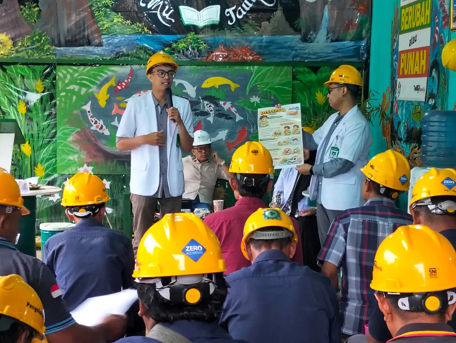 Penyuluhan ini menghadirkan dokter muda (koas) sebagai narasumber, yaitu Anselmus Libreya Sinulingga, Rofi Yoga Ardandi, Gusnanto Luthfi Perdana, Azmi Adha Nurhaniefah, dan Ellysa Angguman Putri. Para pemateri menyampaikan edukasi secara sistematis dan aplikatif mengenai gangguan dispepsia, yang merupakan salah satu keluhan kesehatan paling umum di lingkungan kerja.
